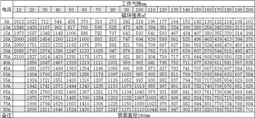 磁感應(yīng)強(qiáng)度:7000 Oe(氣隙200mm時)